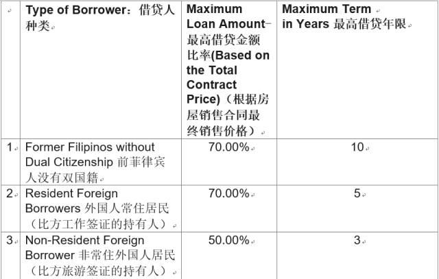 BDO金融银行的房贷规定,主要针对外籍居民和前菲律宾人且没有双重国籍的居民 。